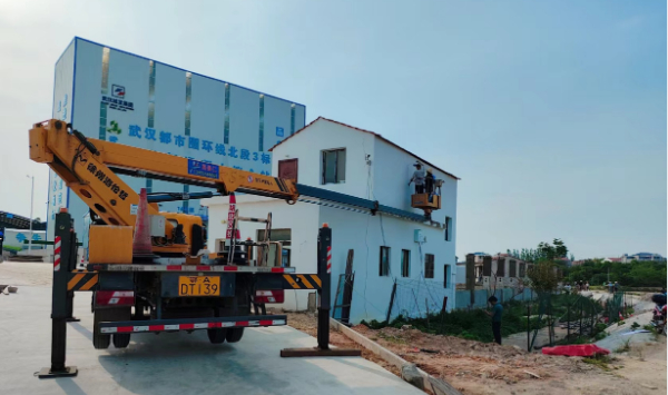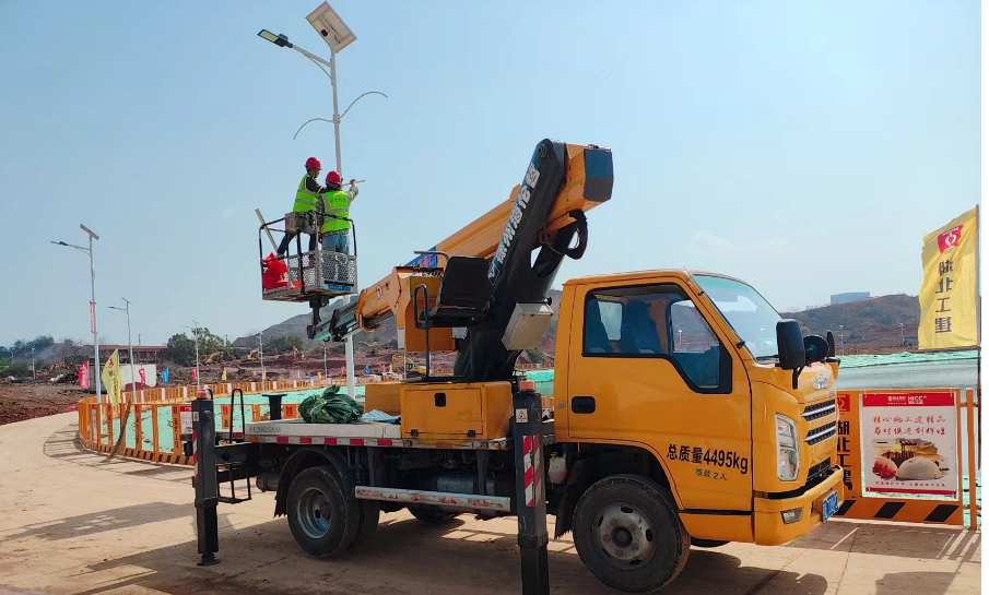武漢升降車載人掛紅旗施工現(xiàn)場,效…