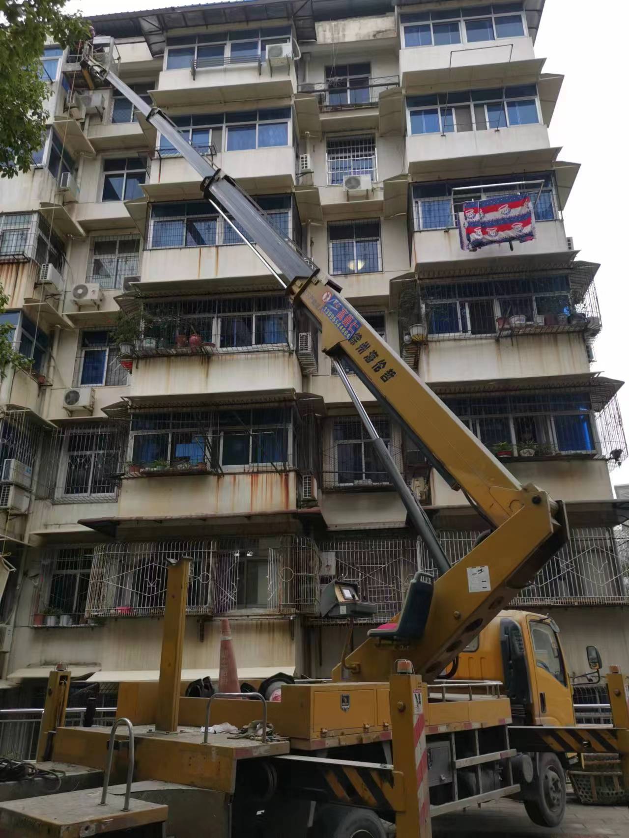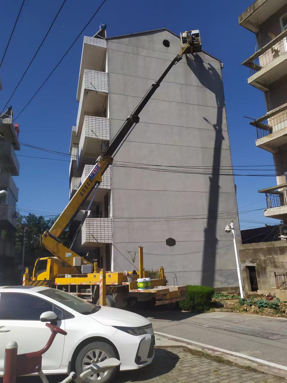 24米登高車樓棟外墻修補(bǔ)施工現(xiàn)場,…