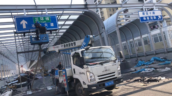 18米藍(lán)牌輕型登高車安裝交通指示牌…