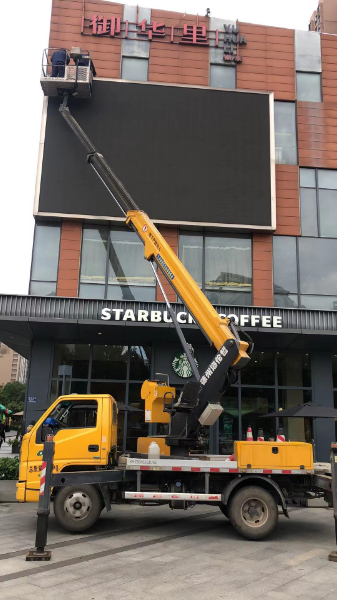 22米登高車安裝電子屏幕施工現(xiàn)場(chǎng)